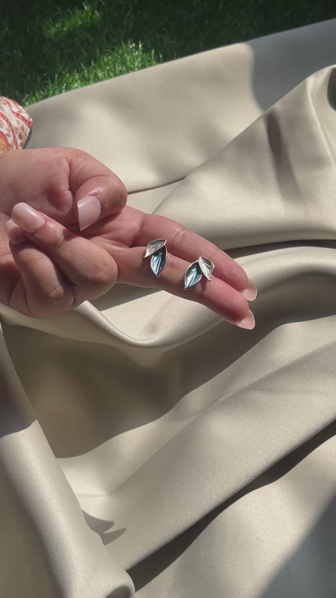 FrostLeaf Drops feature cool blue and white leaf motifs for a clean and winter-inspired look. These earrings add subtle elegance without overwhelming your outfit. ❄️💙